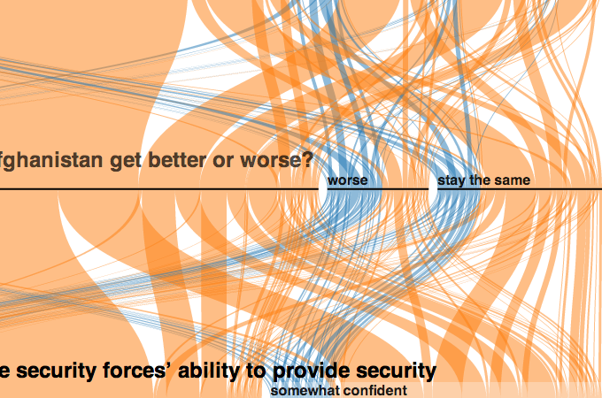 Visualisation showing results of 32 provinces surveyed for the upcoming presidential elections.
