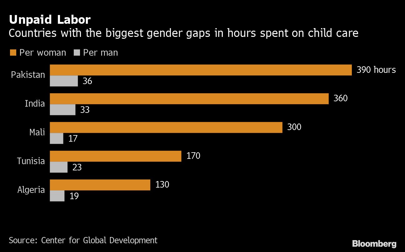 Globally, women took on 173 additional hours of unpaid child care last year, compared to 59 additional hours for men, a study released Friday by the Center for Global Development, a poverty non-profit, found. The gap widened in low- and middle-income countries, where women cared for children for more than three times as many hours as men did.