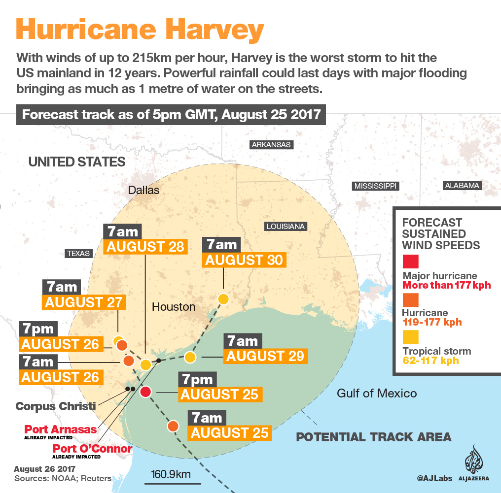 Houston, Texas – My first view of Hurricane Harvey was from above, aboard one of the last flights allowed to land in Houston.