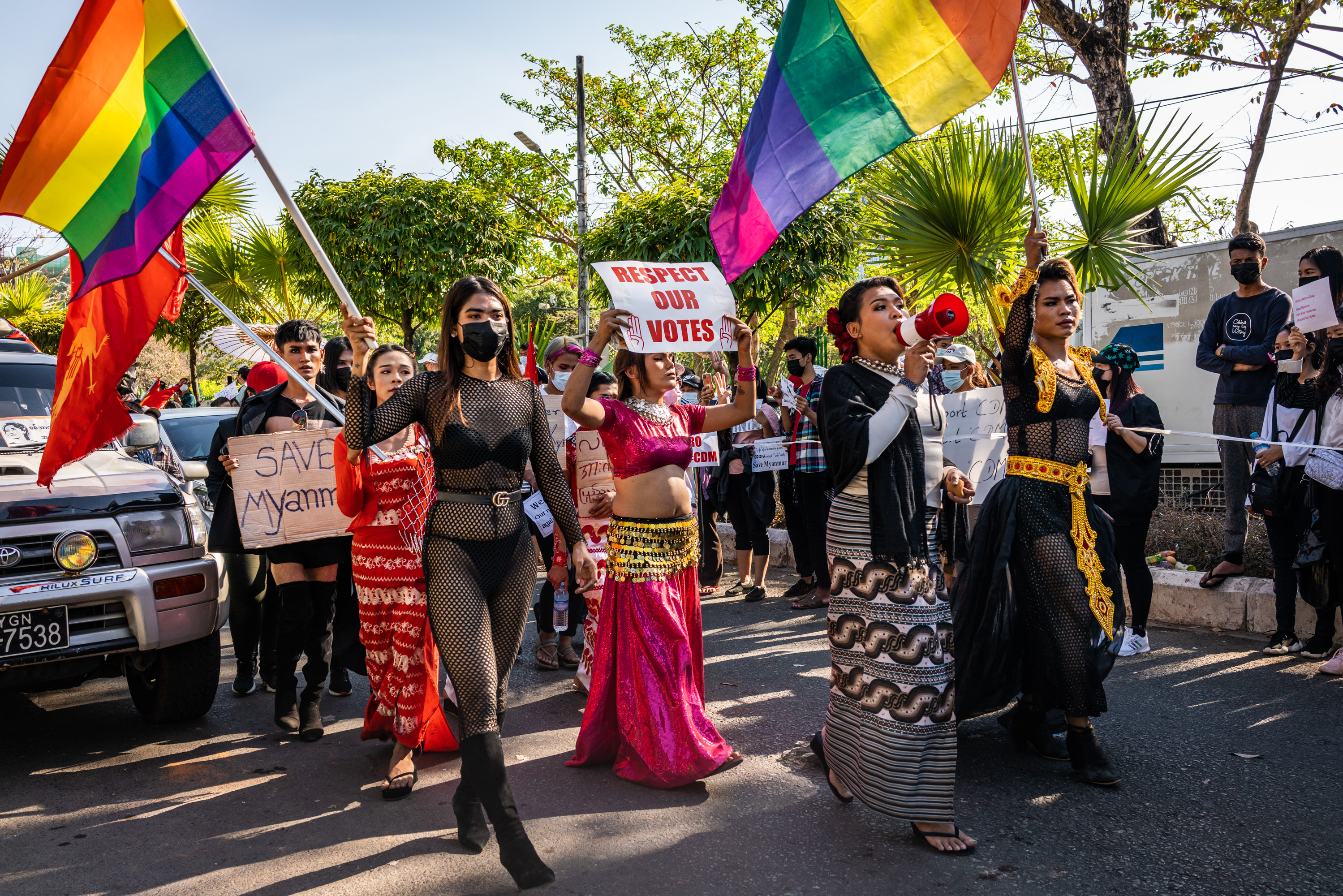 “As a trans woman, I want the future generation of Myanmar to know the LGBTQ community risked everything and stood valiant against the military,” she says.