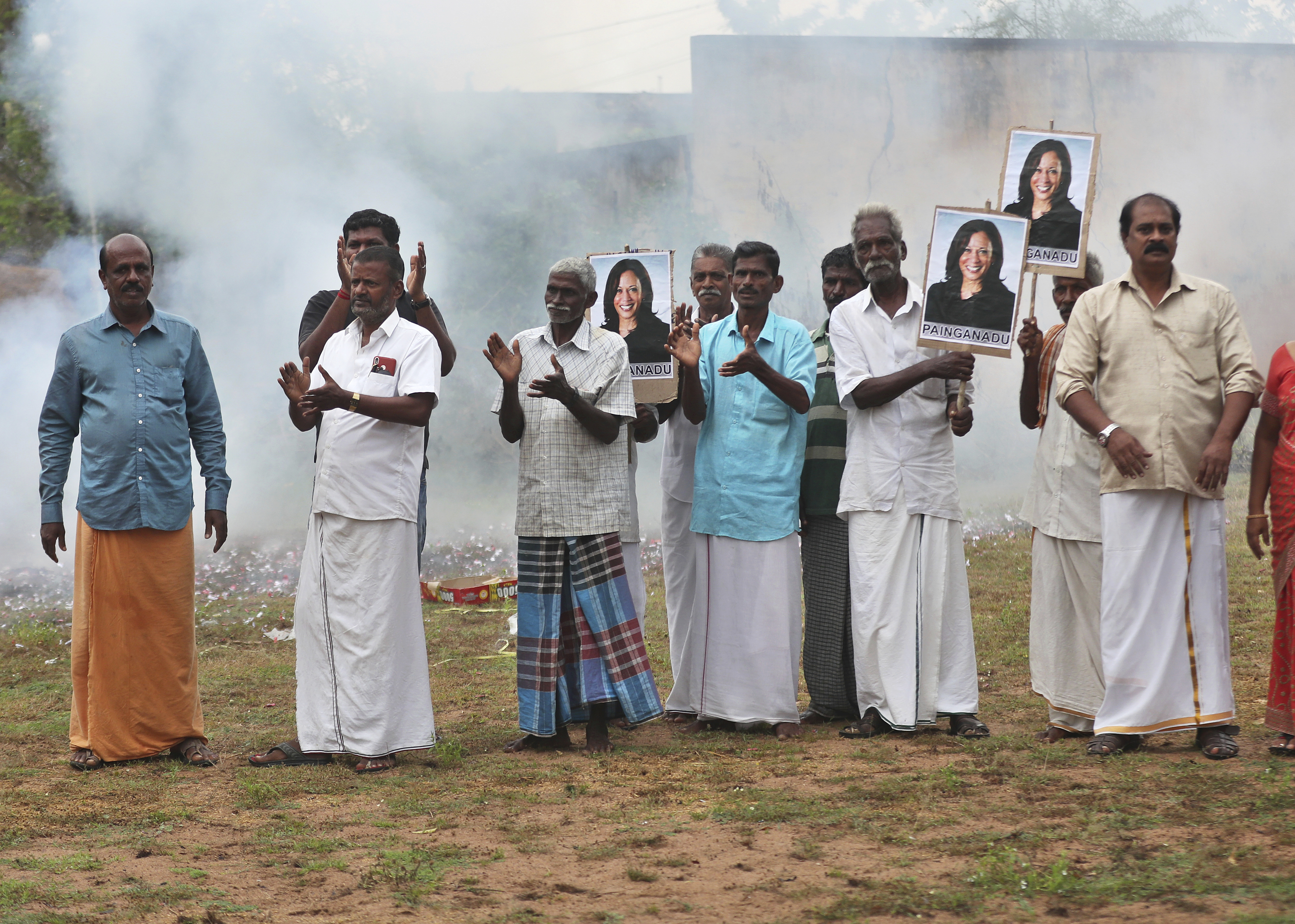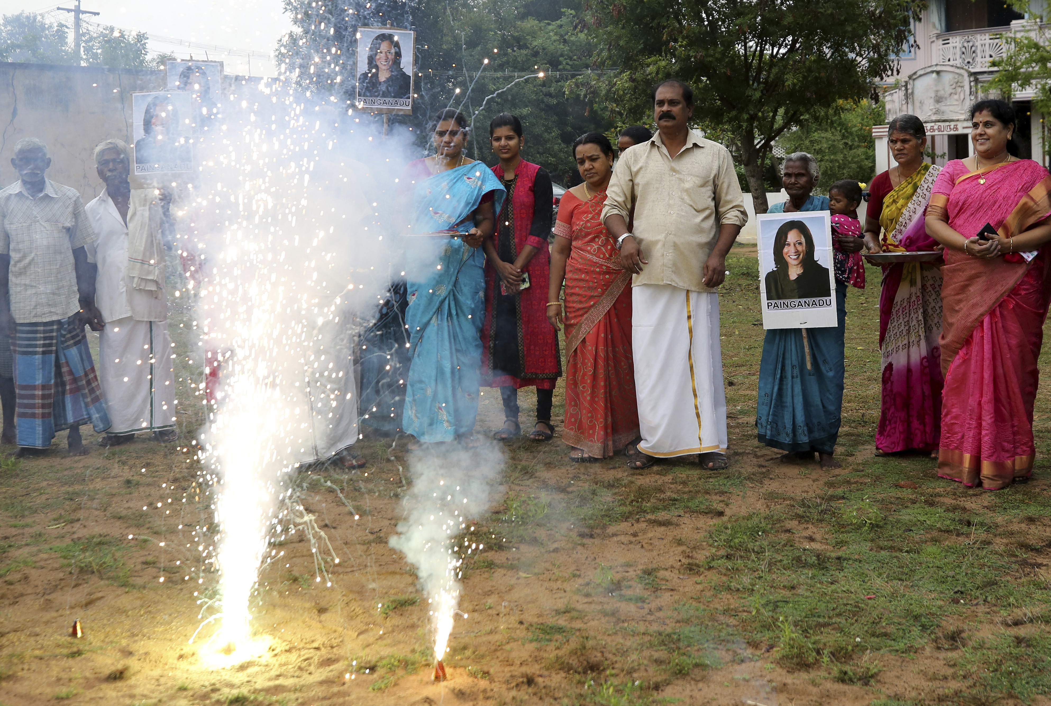 Waking up to the news that Kamala Harris had won the race to be the next US vice president, overjoyed people in her Indian grandfather’s home town set off firecrackers, offered prayers and carried placards.