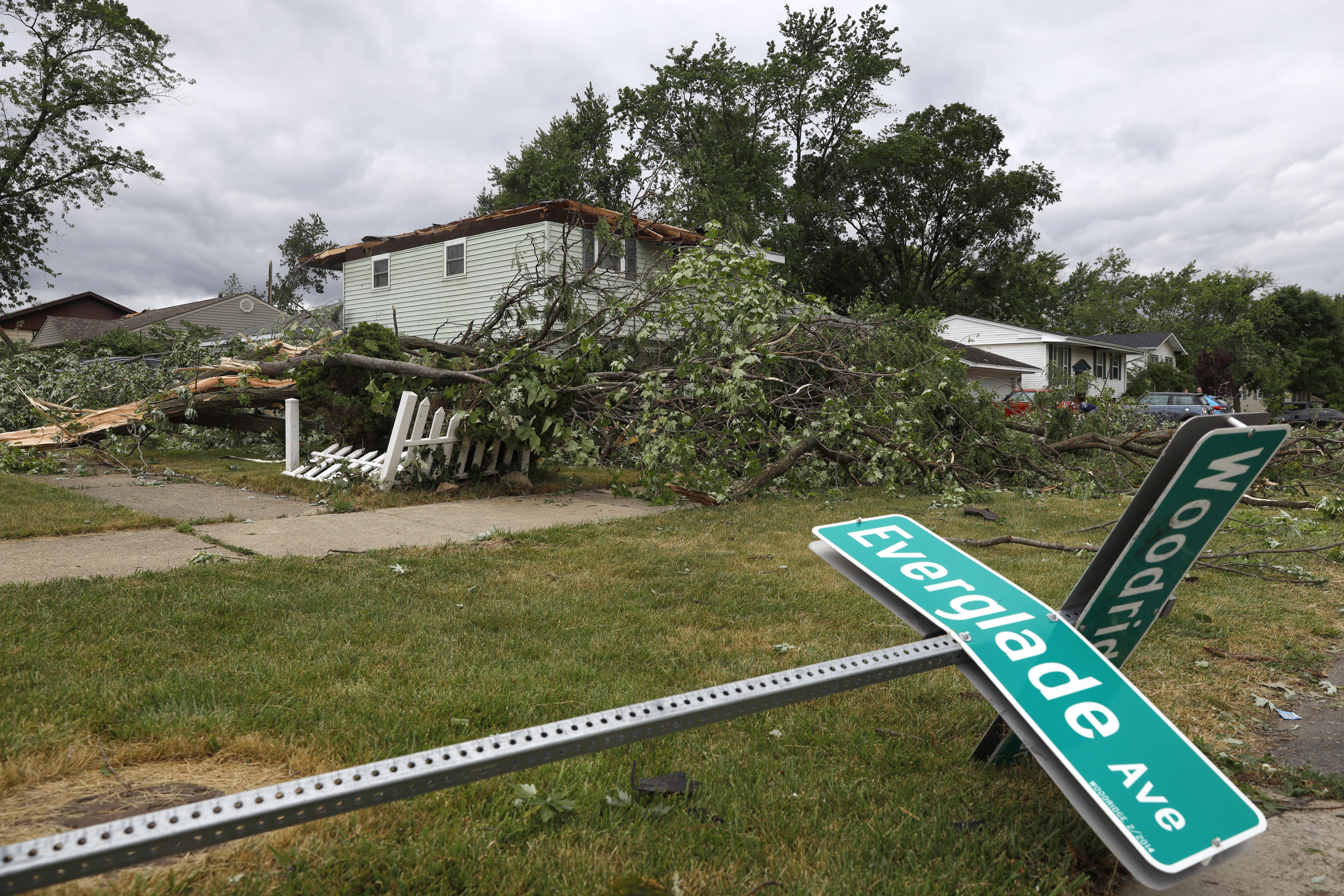 Officials in the nearby village of Woodridge said a tornado damaged at least 100 structures. The village’s fire chief said three people were taken to hospitals, but he could not provide more details on their injuries during a Monday press conference.