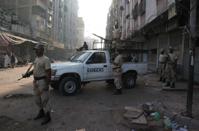 Gunfire and protests began in the Pakistani city of Hyderabad, an MQM stronghold, within minutes of the arrest being reported.