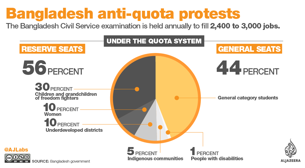 Muhammad Rashed Khan, joint convener of “Council to Protect Bangladesh’s General Students Rights” told Al Jazeera that they had been holding peaceful demonstrations since the announcement made by the prime minister.