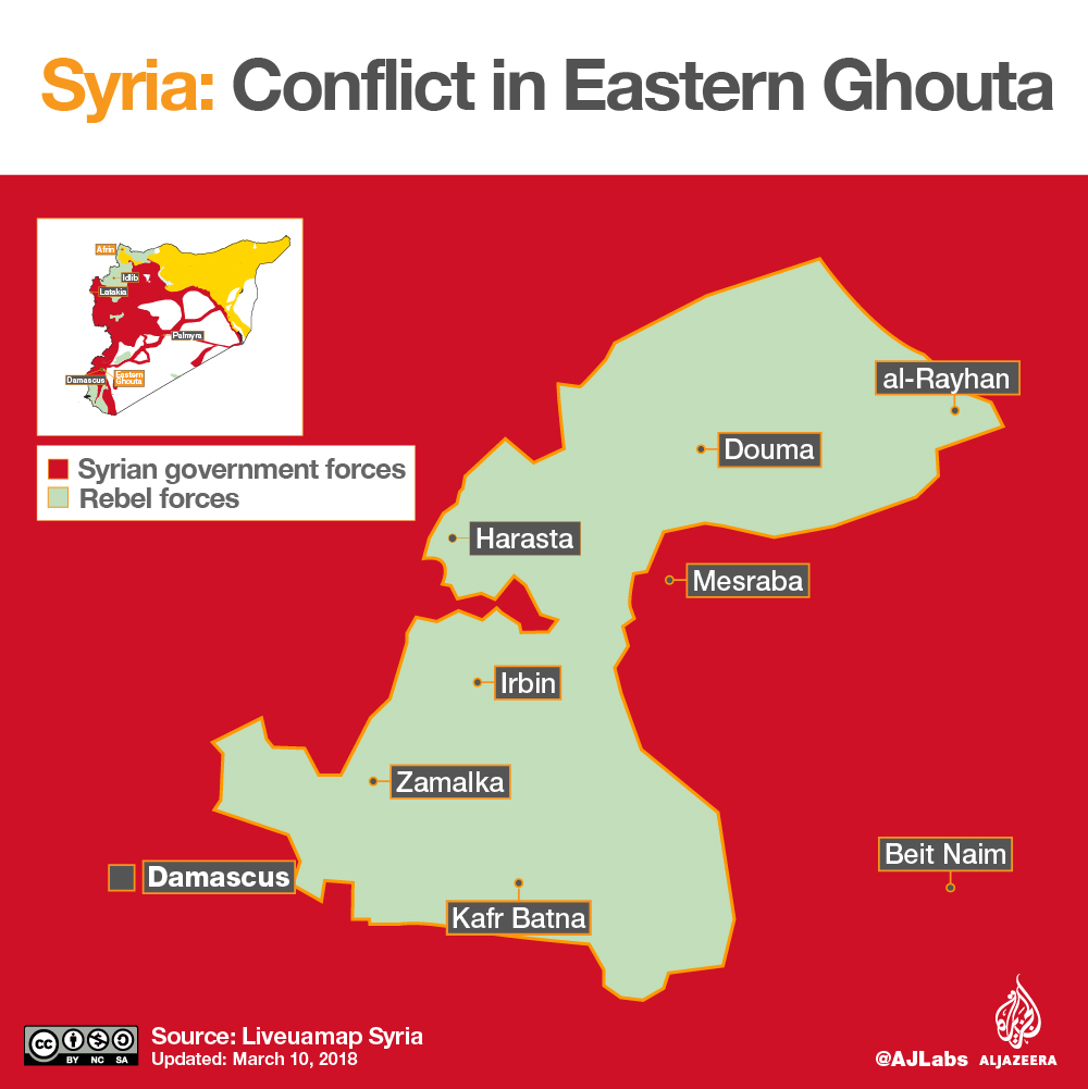 The suburb, 15km east of Damascus has an estimated population of 400,000, who have been under siege since 2013.