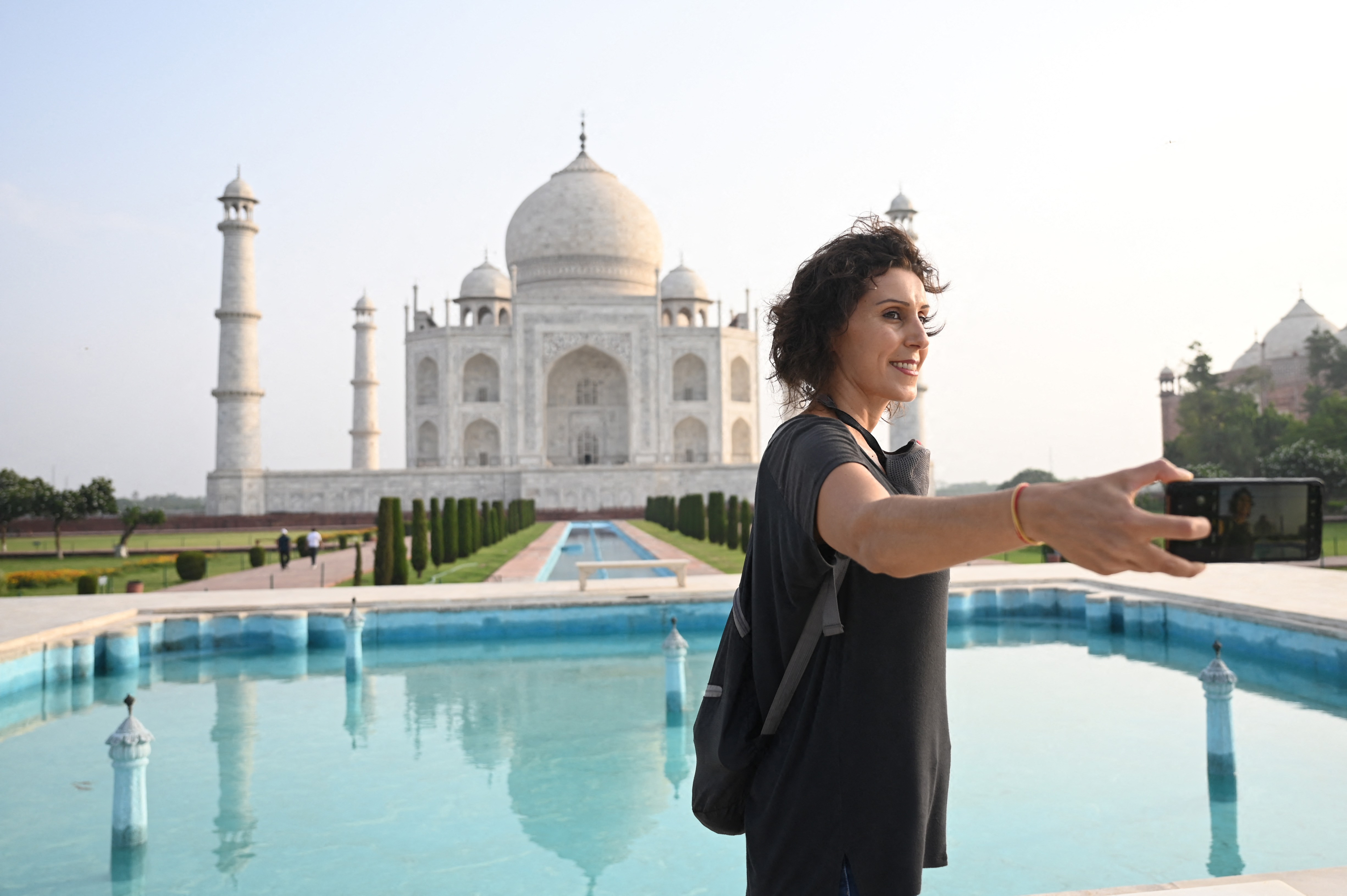 COVID-19 precautions meant visitors were not allowed to touch the shining marble mausoleum, but those making the pilgrimage to one of the New Seven Wonders of the World were still delighted.