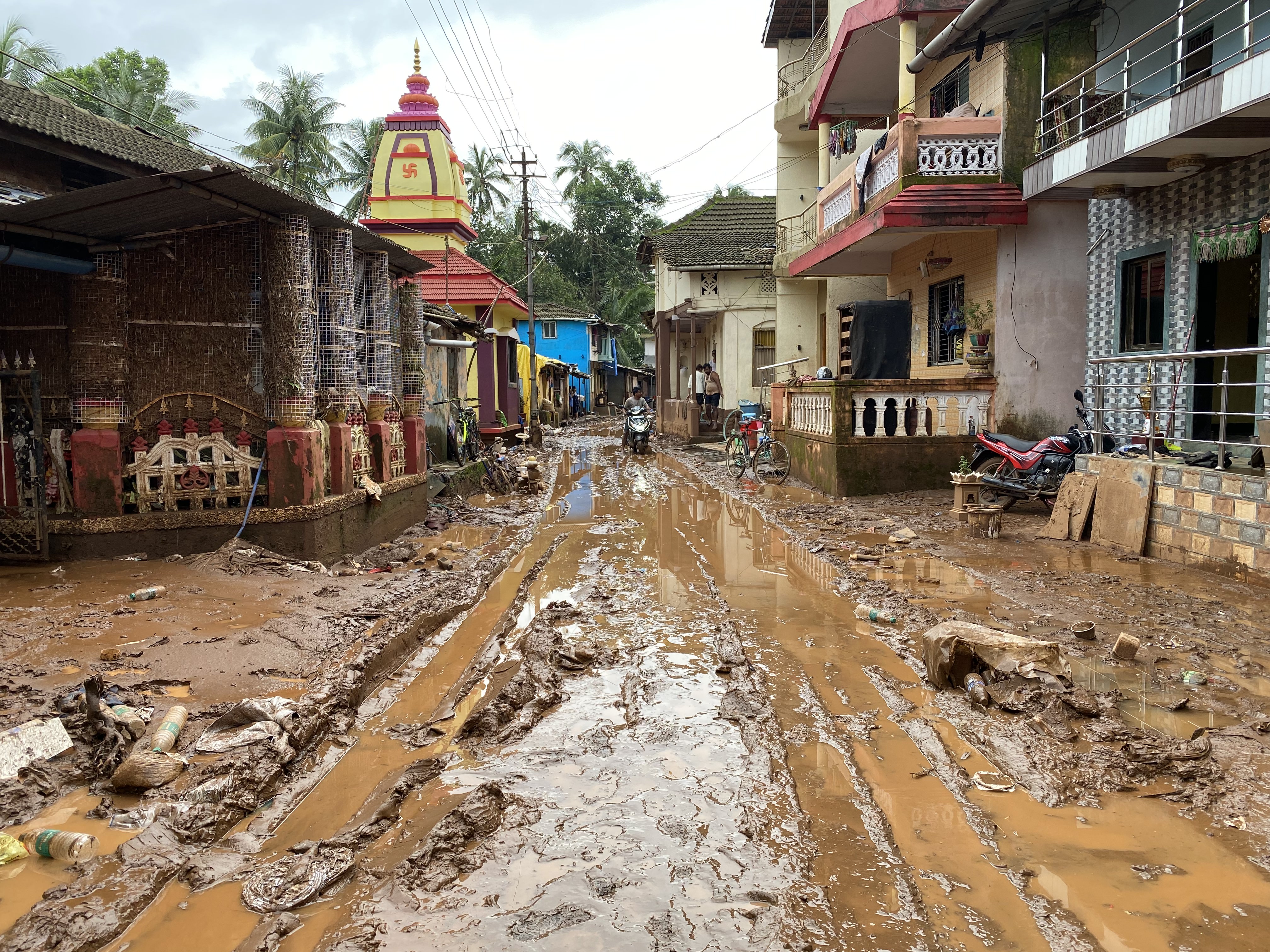 But the devastating floods have left heaps of mud that has not been cleared a week after the disaster, which destroyed dozens of houses and businesses, and made nearly 1,000 people homeless in Chiplun.