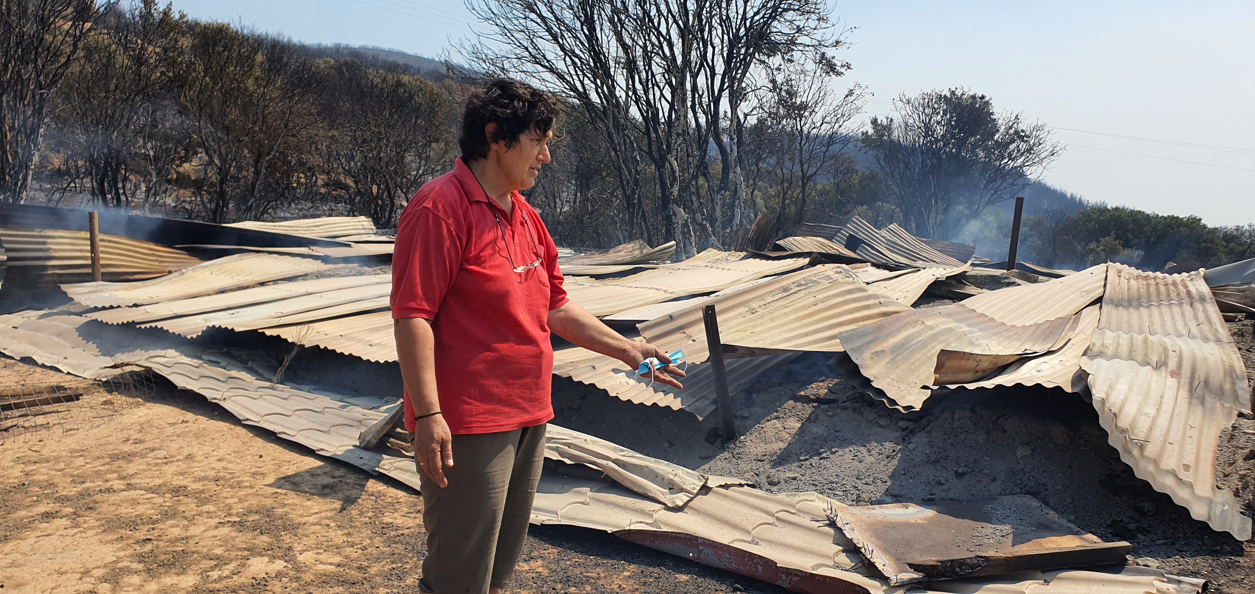 Her sheep and goats lay in poses of terror, carbon statues of themselves, mouths open, heads lifted as if in a final scream when the wildfire rushed over them. The intense heat had skinned them. One’s intestines were visible on its belly.
